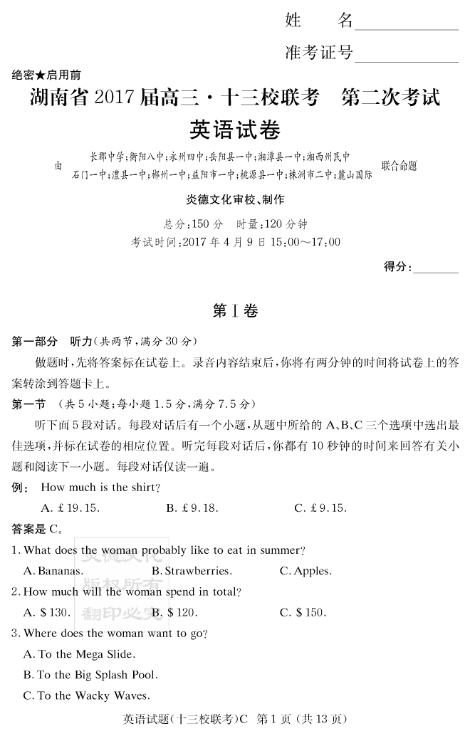 下一篇:【語文】炎德英才大聯考2017長郡中學高三8次月考(十三校聯考二)