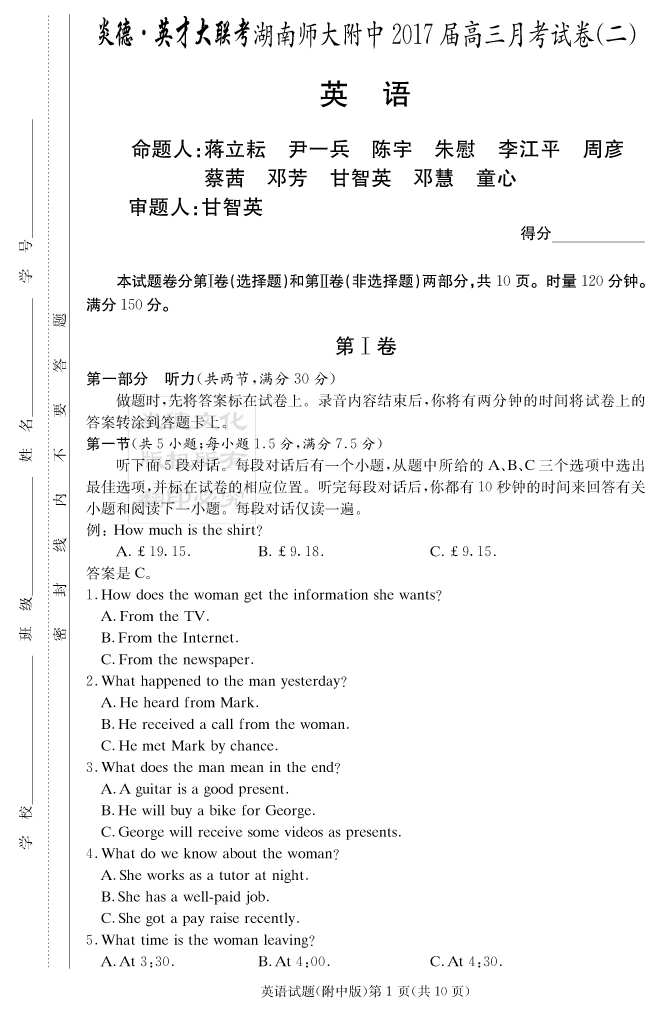 下一篇:【語文】炎德英才大聯考2017師大附中高三2次月考