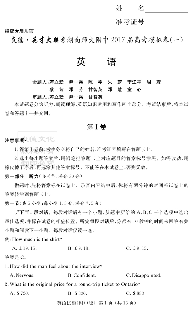 下一篇:【語文】炎德英才大聯考2017師大附中高三8次月考(模擬一)