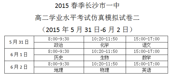 上一篇:2015春季長沙市一中高二學業水平考試仿真模擬試卷一考試時間安排(2015年5月15-16日)