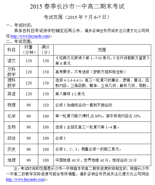 上一篇:2015春季長沙市一中高二學(xué)業(yè)水平考試仿真模擬試卷二考試時間安排(2015年5月31日-6月2日)