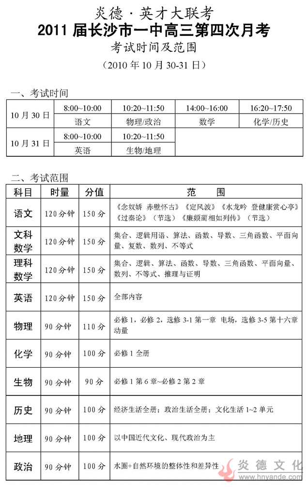 上一篇:炎德英才大聯考長沙市一中2011屆高三第三次月考考試時間和范圍