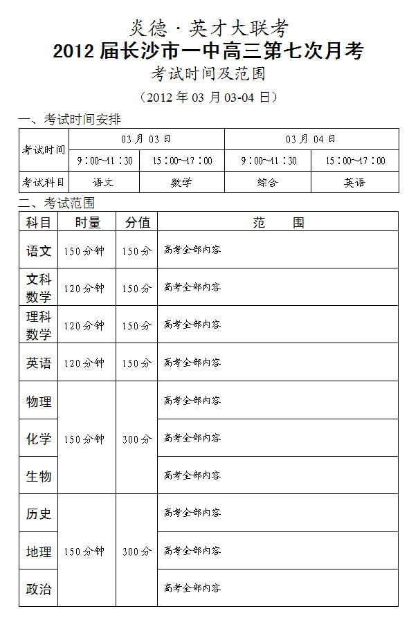 下一篇:炎德英才大聯(lián)考長沙市一中2012屆高三第一次模擬(第九次月考)考試時(shí)間和范圍