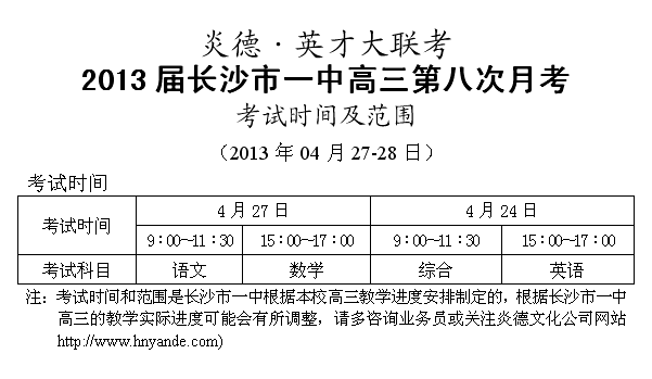 來源:炎德文化點擊:2013-04-22 18:38:54收藏本文當前位置:考試范圍 長沙一中 高三 正文