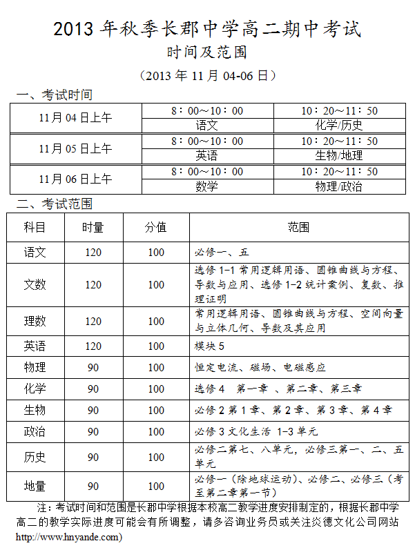 上一篇:2013年秋季長郡中學(xué)高二第一次月考考試時間和范圍(2013.10.06-07)