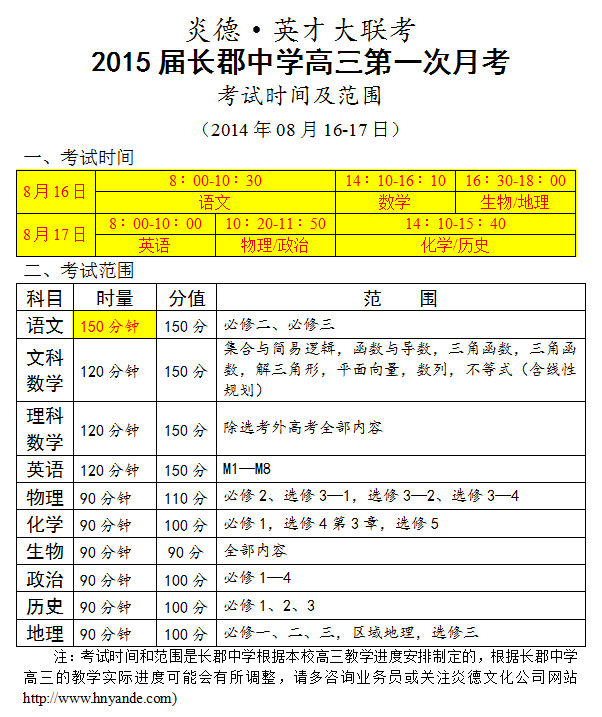 來源:炎德文化點擊:2014-08-08 16:55:14收藏本文當前位置:考試范圍 長郡中學 高三 正文