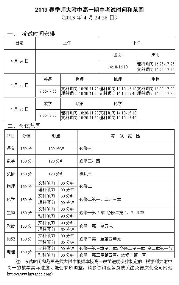 上一篇:2013春季師大附中高一第一次考試時間和范圍(2013年3月22-24日)