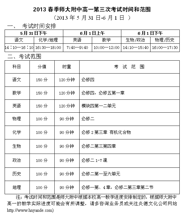 上一篇:2013春季師大附中高一期中(第二次)考試時間和范圍(2013年4月24-26日)