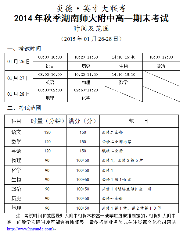 上一篇:炎德英才大聯考2014年秋季湖南師大附中高一第三次月考考試時間和范圍(2014.12.27-28)