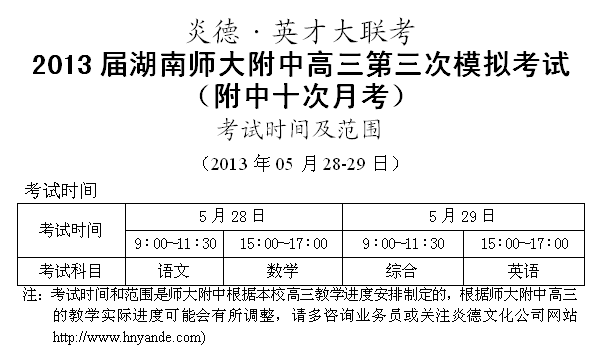 下一篇:炎德英才大聯考師大附中2014屆高三第1次月考考試時間和范圍(2013.08.28-29)