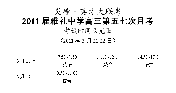 下一篇:炎德英才大聯考雅禮中學2011屆高三第八次月考考試時間