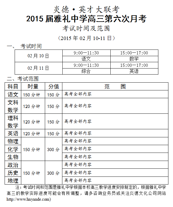 來源:炎德文化點擊:2015-02-03 10:11:22收藏本文當前位置:考試范圍 雅禮中學 高三 正文