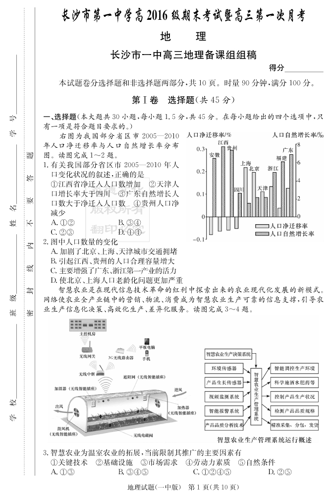 2026湖南師大附中新高考考前小題訓練·地理