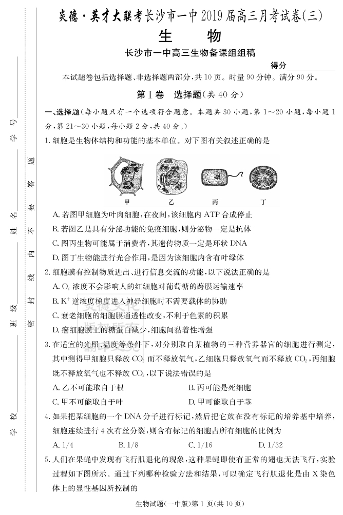 2026湖南師大附中新高考考前小題訓練·生物