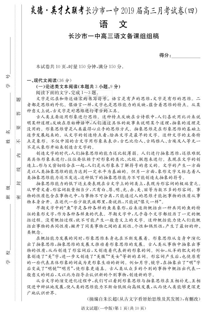 2026湖南師大附中新高考考前小題訓練·語文