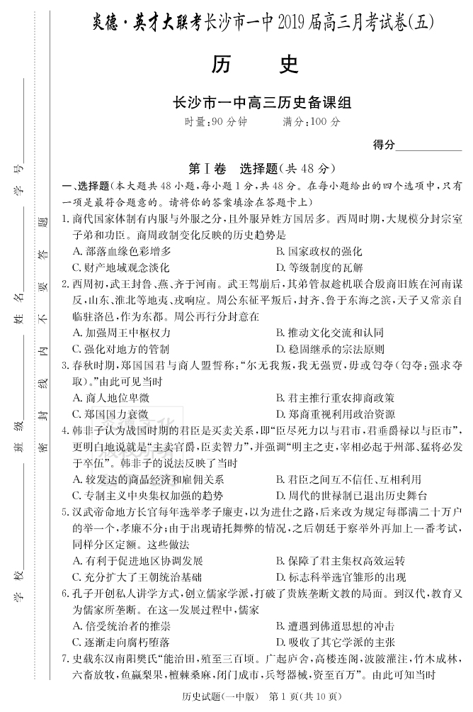 2026年高中寒假作業自主學習作業本·高一年級·歷史