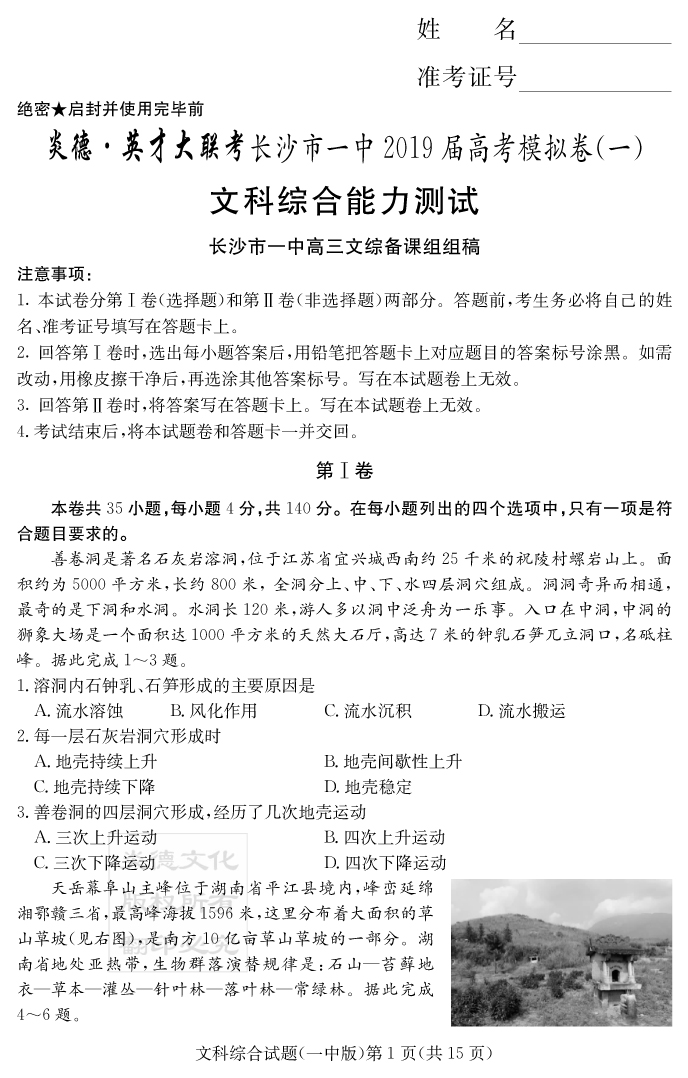 2026湖南師大附中新高考考前小題訓練·地理