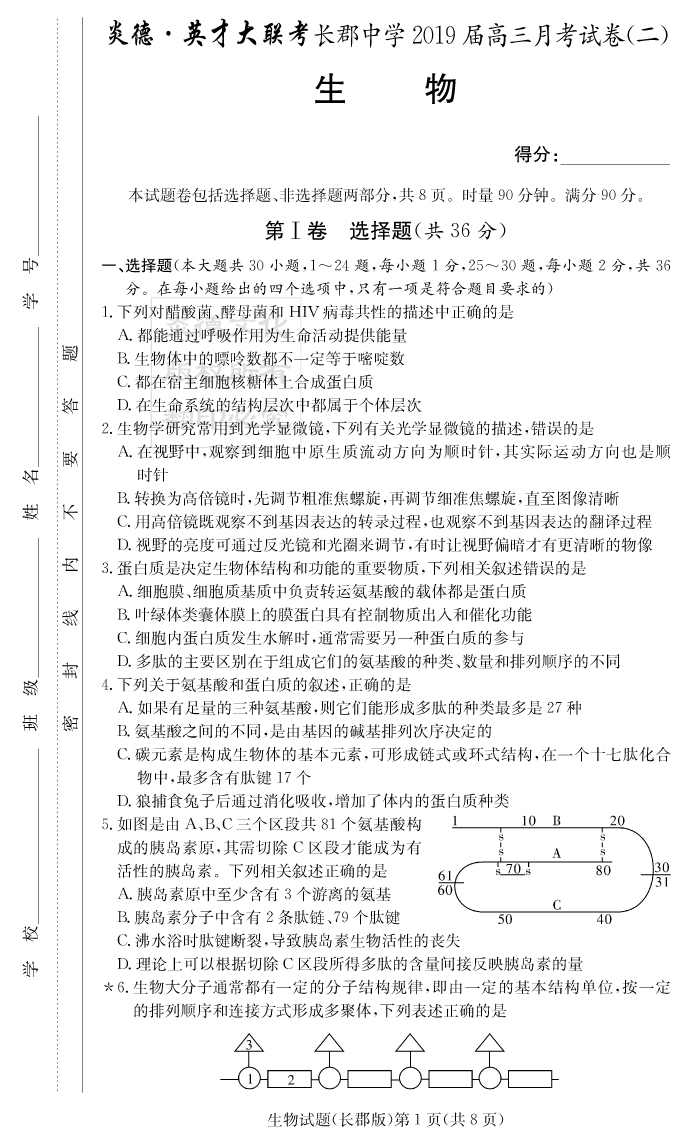 2026湖南師大附中新高考考前小題訓練·生物