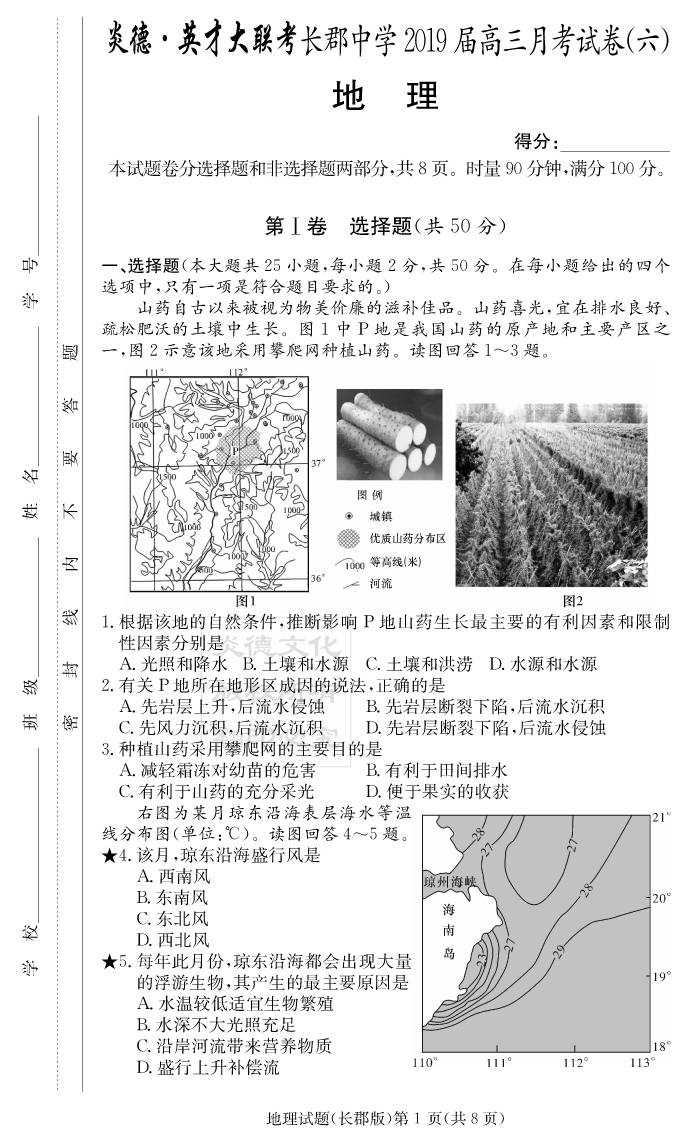 2026湖南師大附中新高考考前小題訓練·地理