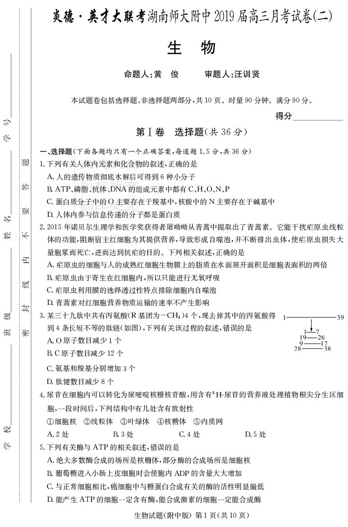 2026湖南師大附中新高考考前小題訓練·生物