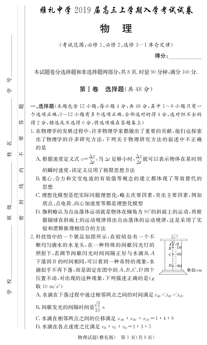 上一篇:【文數】雅禮中學2019屆高三上學期入學考試