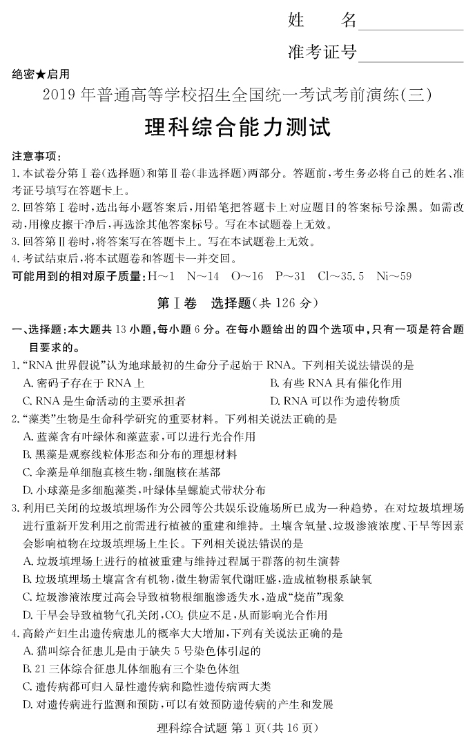 2026年高中寒假作業自主學習作業本·高三年級·生物