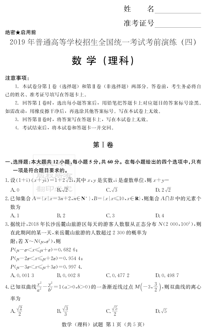 下一篇:【理綜】2019年普通高等學校招生全國統一考試考前演練(四)
