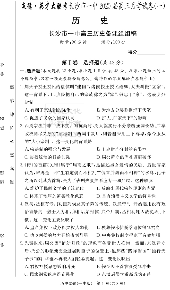 2026湖南師大附中新高考考前小題訓練·歷史