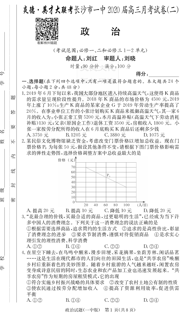 2026湖南師大附中新高考考前小題訓練·政治