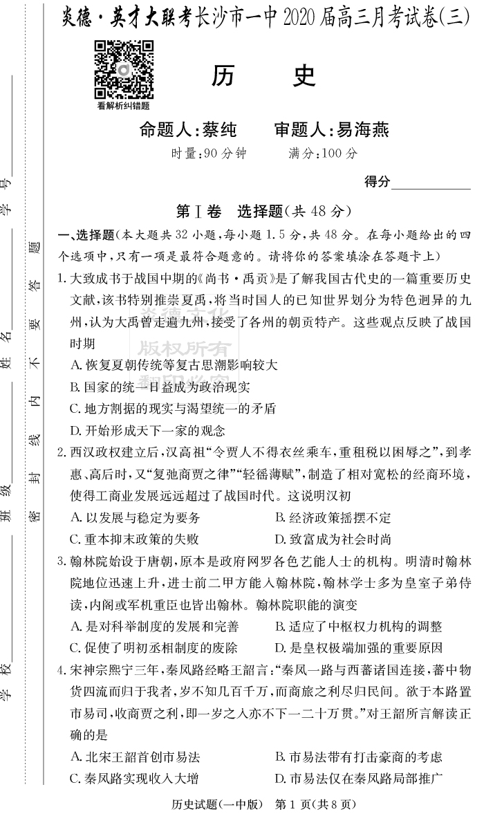 | 資源類別: | 名校月考 | |