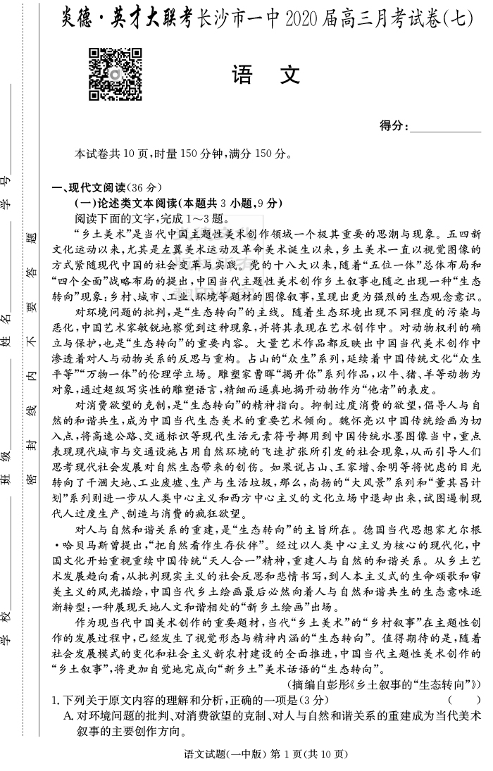 2026湖南師大附中新高考考前小題訓練·語文