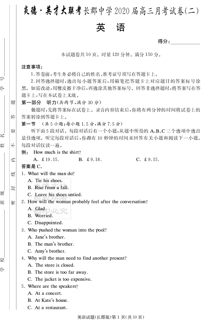 上一篇:【物理】炎德英才大聯(lián)考2020屆長郡中學高三2次月考