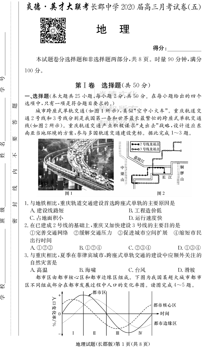 2026湖南師大附中新高考考前小題訓練·地理