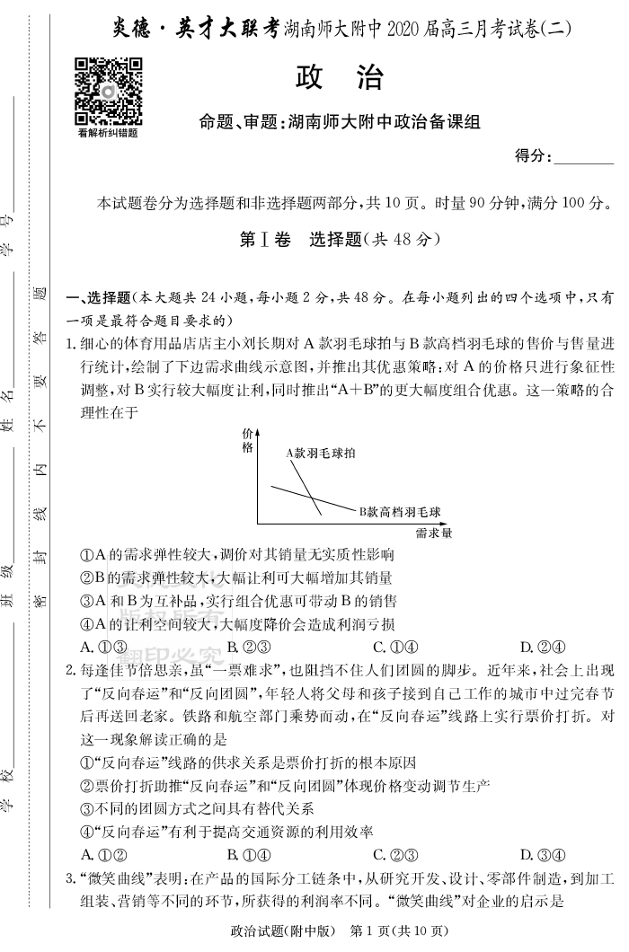 2026湖南師大附中新高考考前小題訓練·政治