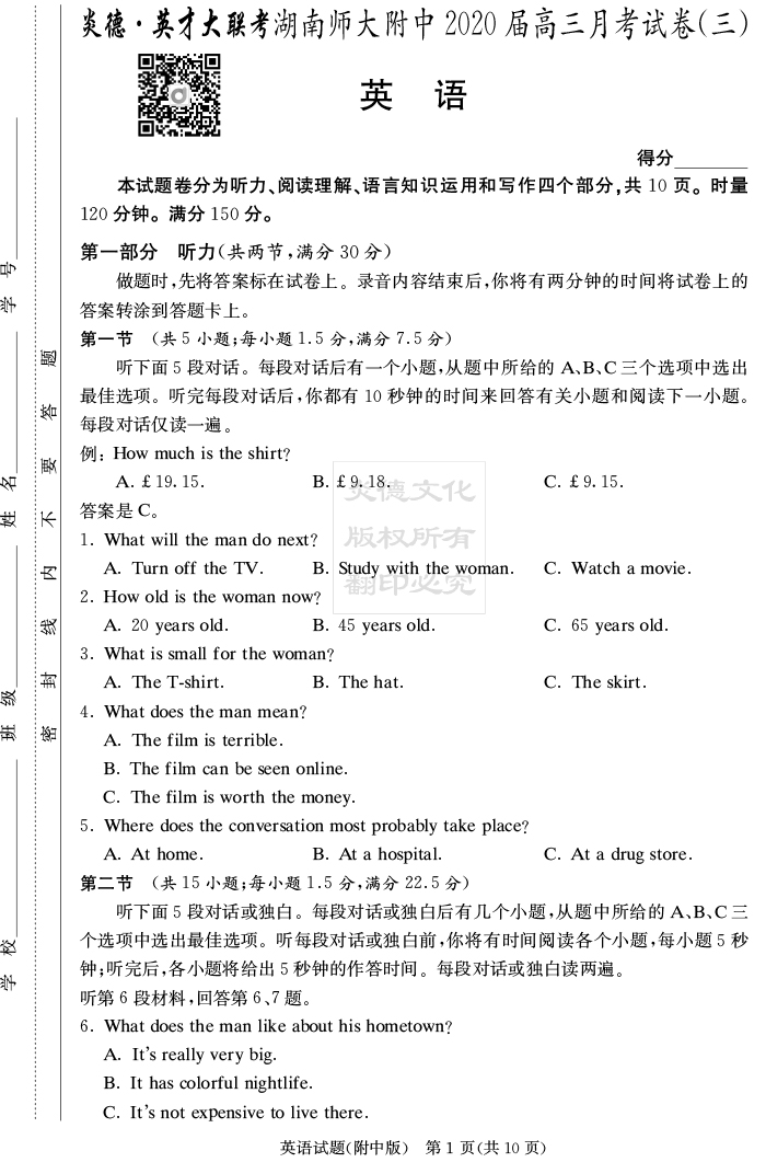 下一篇:【語文】炎德英才大聯考2020屆師大附中高三3次月考