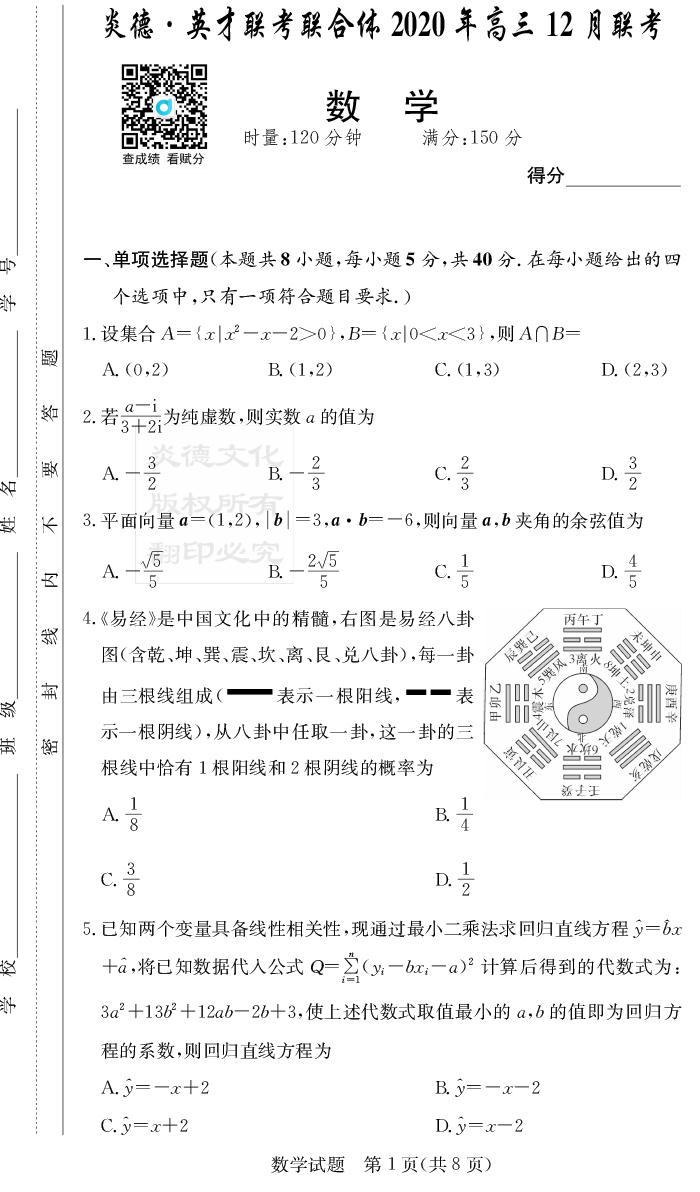 2026年高中寒假作業自主學習作業本·高三年級·數學