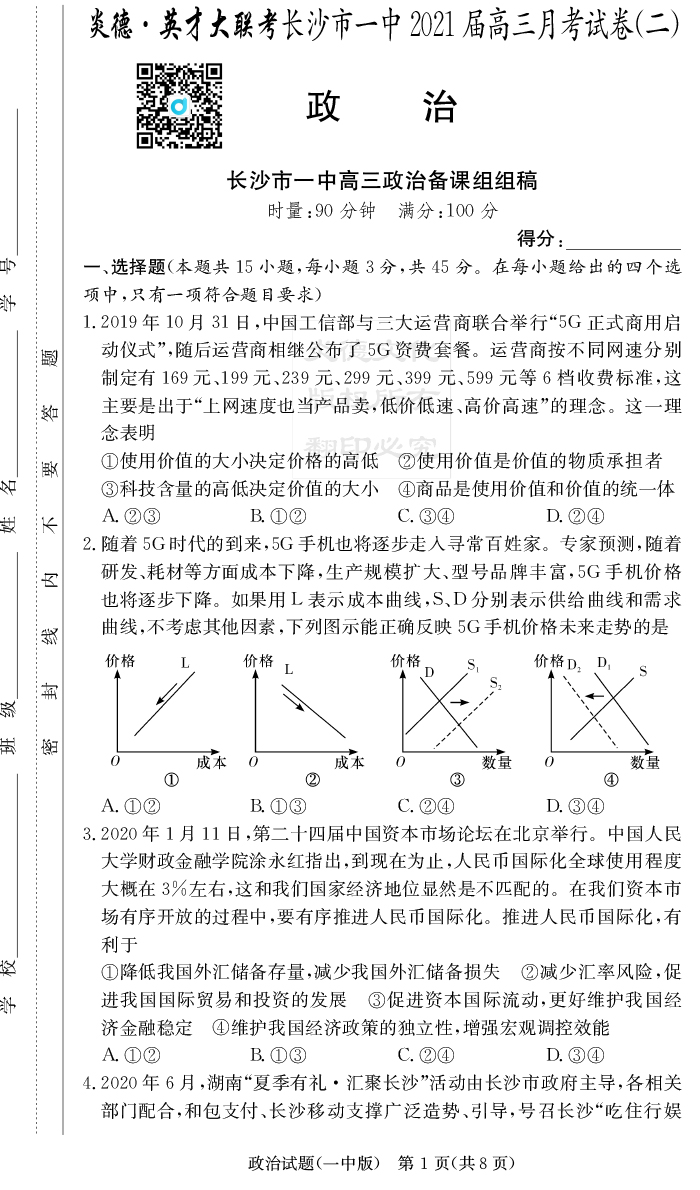 2026湖南師大附中新高考考前小題訓練·政治