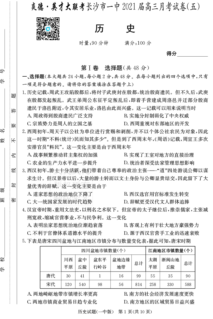 2026湖南師大附中新高考考前小題訓練·歷史