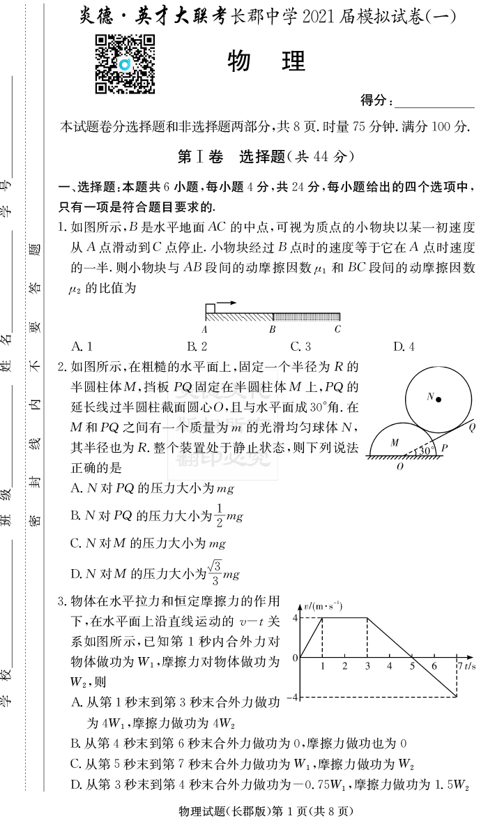 2026年高中寒假作業自主學習作業本·高一年級·物理