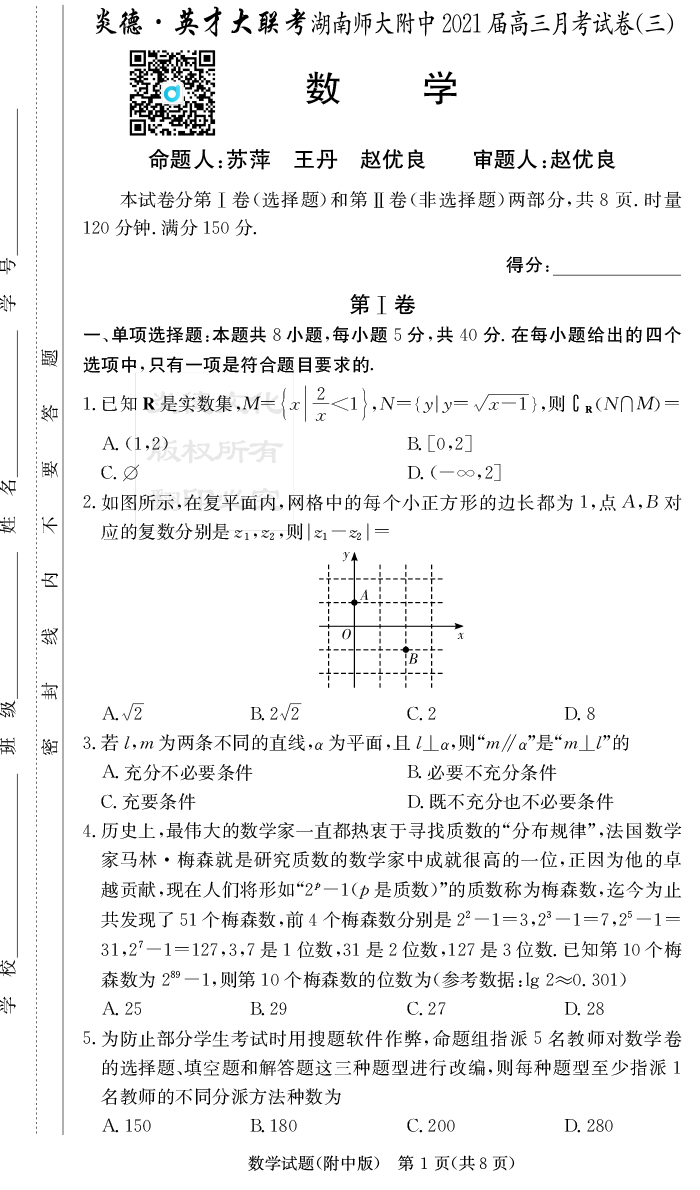 2026湖南師大附中新高考考前小題訓練·數學