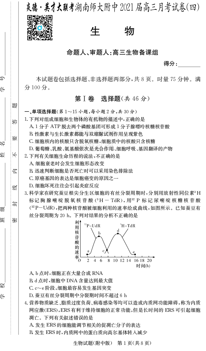 2026湖南師大附中新高考考前小題訓練·生物