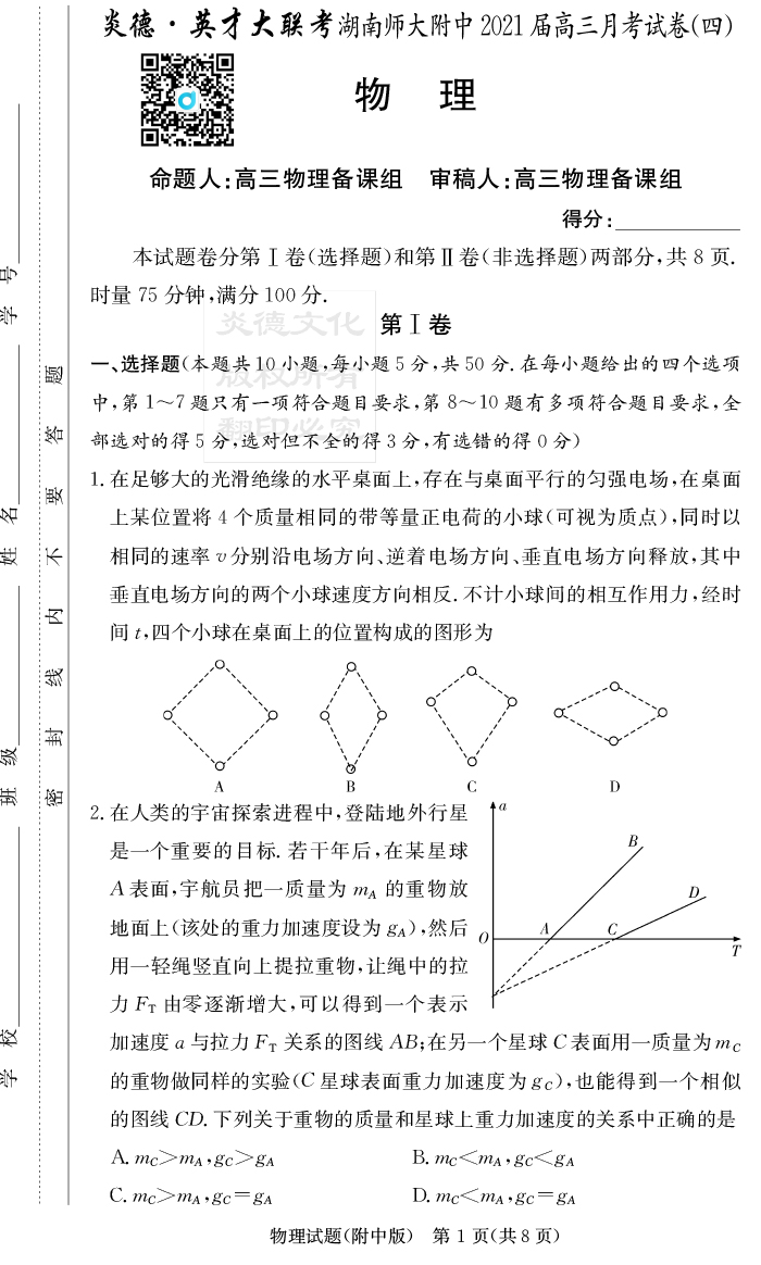 2026湖南師大附中新高考考前小題訓練·物理