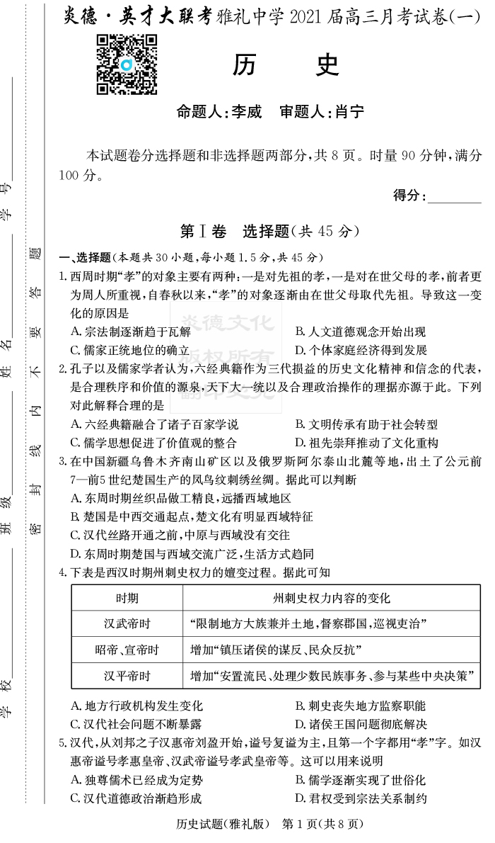 2026年高中寒假作業自主學習作業本·高三年級·歷史