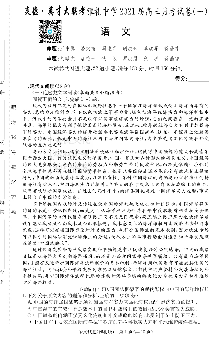 下一篇:【政治】炎德英才大聯考2021屆雅禮中學高三1次月考