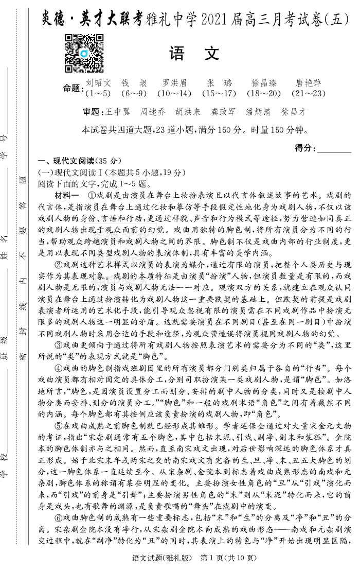 2026湖南師大附中新高考考前小題訓練·語文