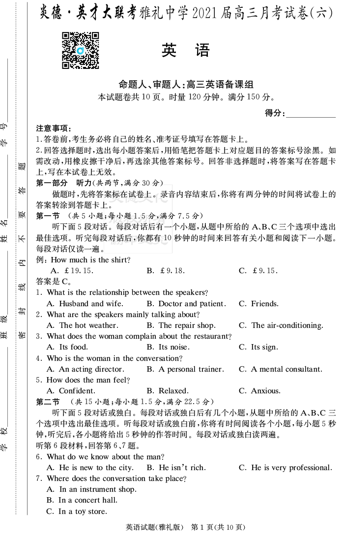 下一篇:【語文】炎德英才大聯考2021屆雅禮中學高三6次月考