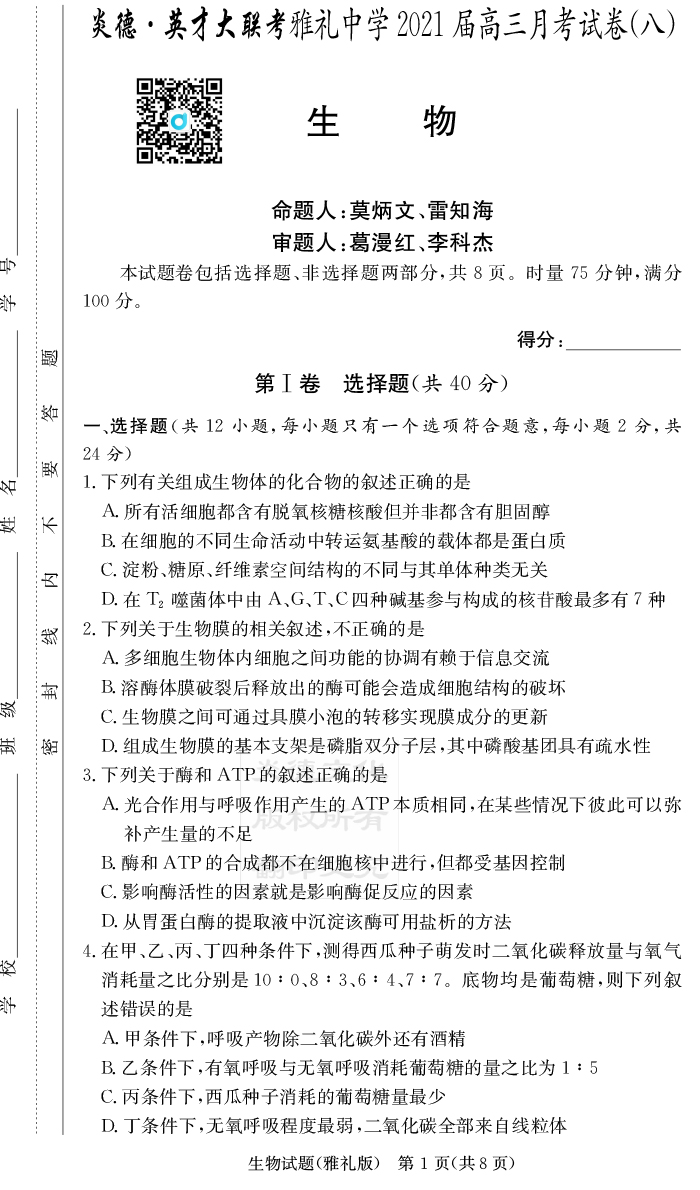 | 資源類別: | 名校月考 | |