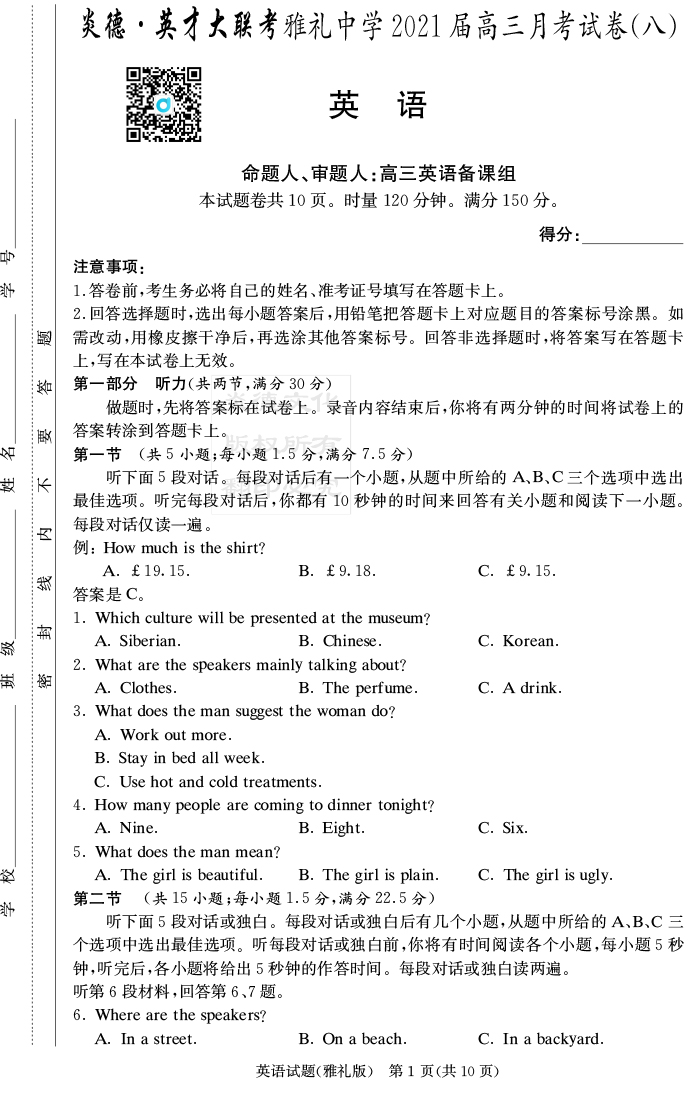 下一篇:【語文】炎德英才大聯考2021屆雅禮中學高三8次月考