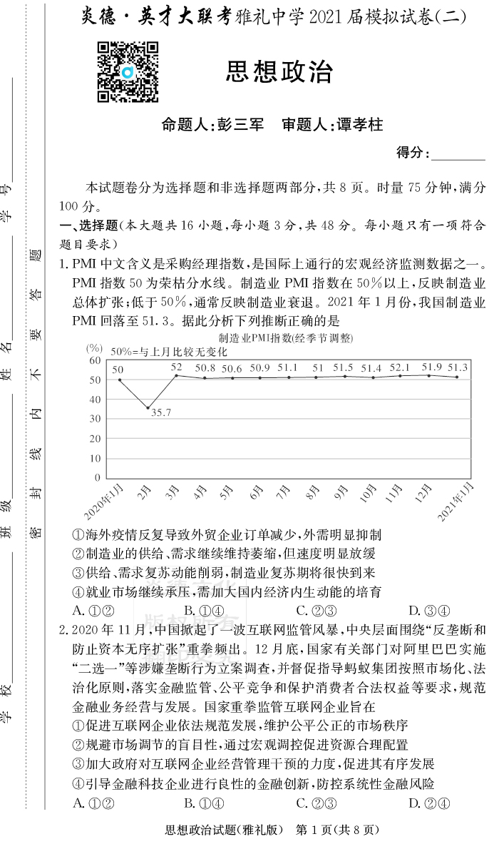 上一篇:【語文】炎德英才大聯考2021屆雅禮中學高三10次月考(模擬二)