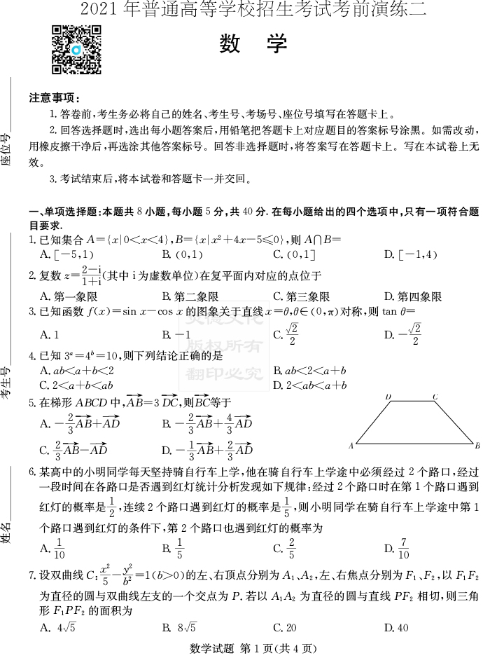2026年高中寒假作業自主學習作業本·高三年級·數學